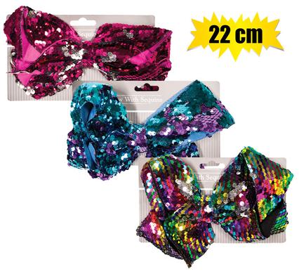 Hair bow oversize asstd sequins 22cm