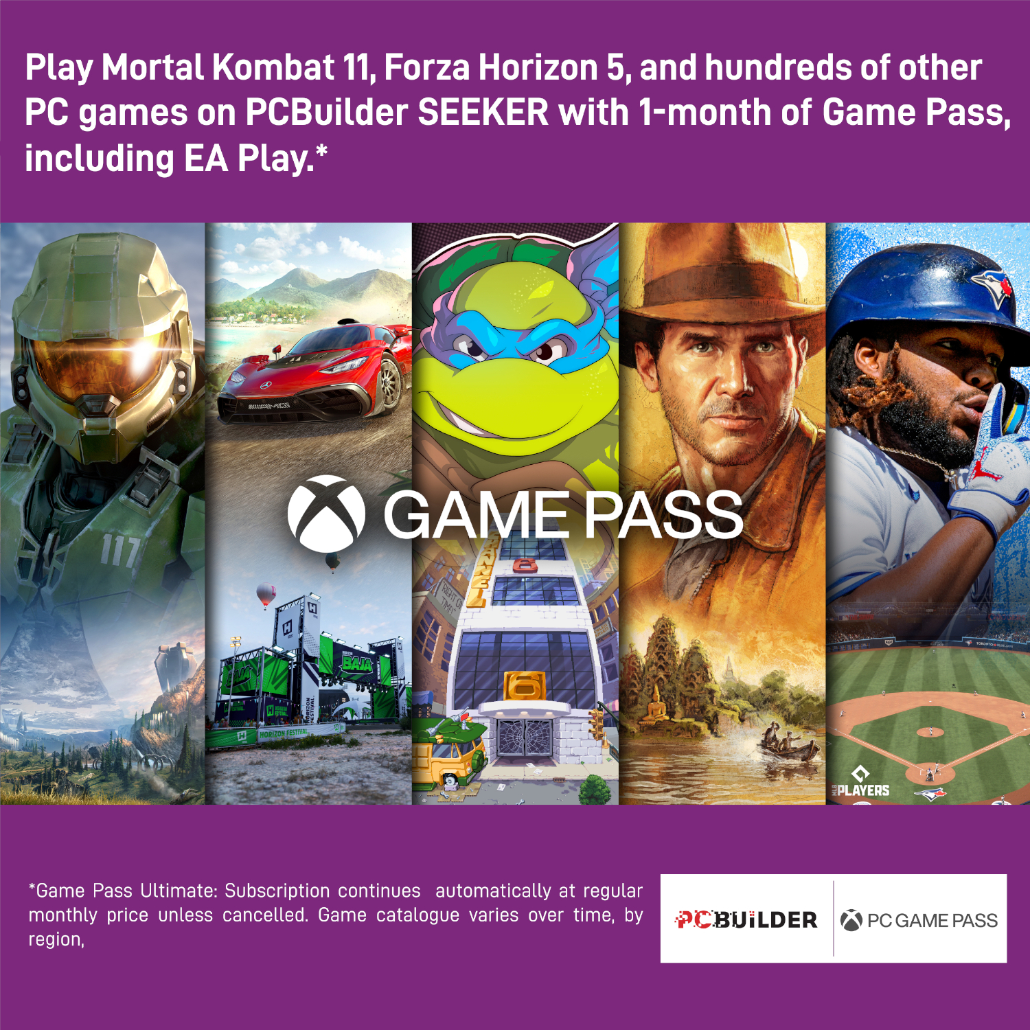 - Play over 100 high-quality PC games like Halo Infinite, Forza Horizon 5 and Teenage Mutant Ninja Turtles: Shredder’s Revenge with your new build and one month of PC Game Pass including EA Play. With new games being added all the time, there’s always something new to play from day one.​